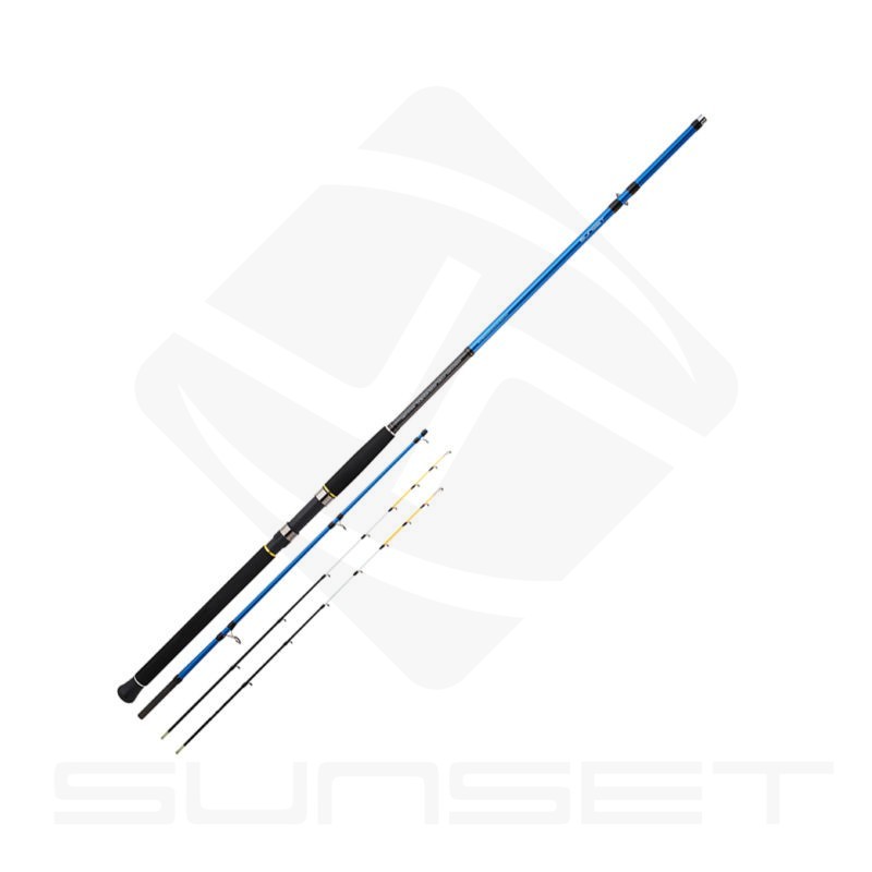 SUSNET DORADA SW 20 Las cañas SUNSET DORADA SW20 cuentan con un Blank de carbono “Technifibre” 24T de tres piezas, un pomo de goma, un mango macizo de espuma EVA negra, un portacarretes tubular plateado, anillas ligadas Seaguide SiC, dos bujes intercambiables de diferentes potencias (80-225g y 100-250 g) y un estuche de ABS. Estas cañas SUNSET DORADA SW20 te permiten practicar la pesca en el mar en embarcación en busca de doradas y otros espáridos. Las cañas SUNSET DORADA SW20 de 3 piezas están equipadas con un Blank de carbono muy potente, una enorme reserva de potencia y 2 bujes intercambiables para una perfecta detección y diferentes potencias para poder adaptarse a diferentes condiciones: corriente, profundidad, viento, cebo utilizado (gusanos). , cangrejos, mejillones, etc.) y pescados muy buscados.