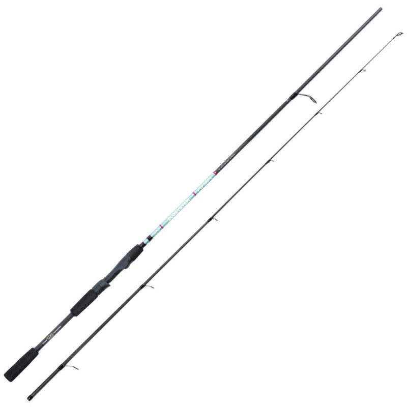 Blank tubular de composición de carbono. Montadas con anillas monopata y cerámicas tipo O-ring. Portacarretes tipo VSS o TVS. Anilla fija-anzuelos incorporada. Funda de tela.